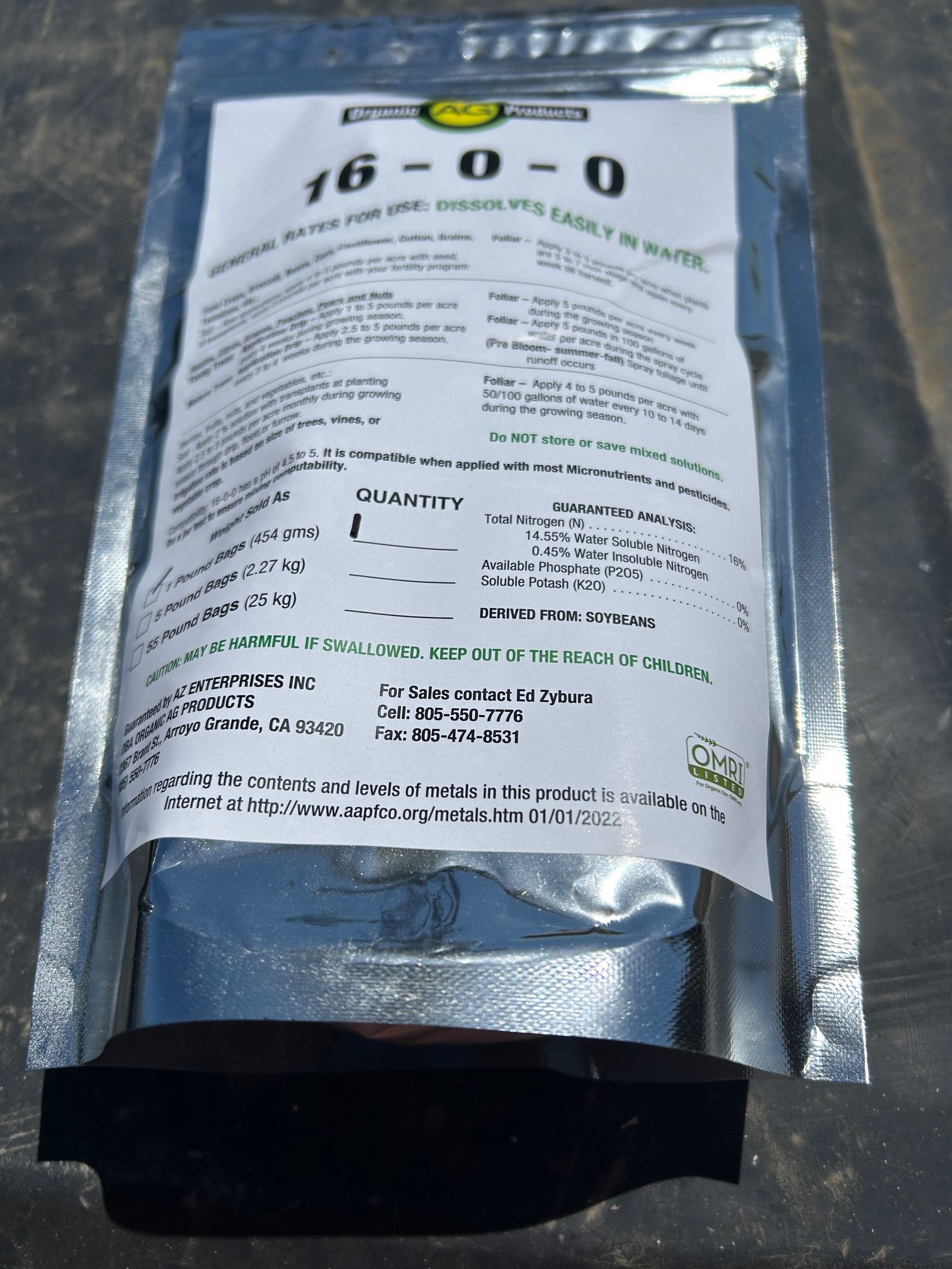 Continue shopping “16-0-0 Water-Soluble Nitrogen Fertilizer – Soy-Based Plant Nutrition – 1lb” has been added to your cart.
